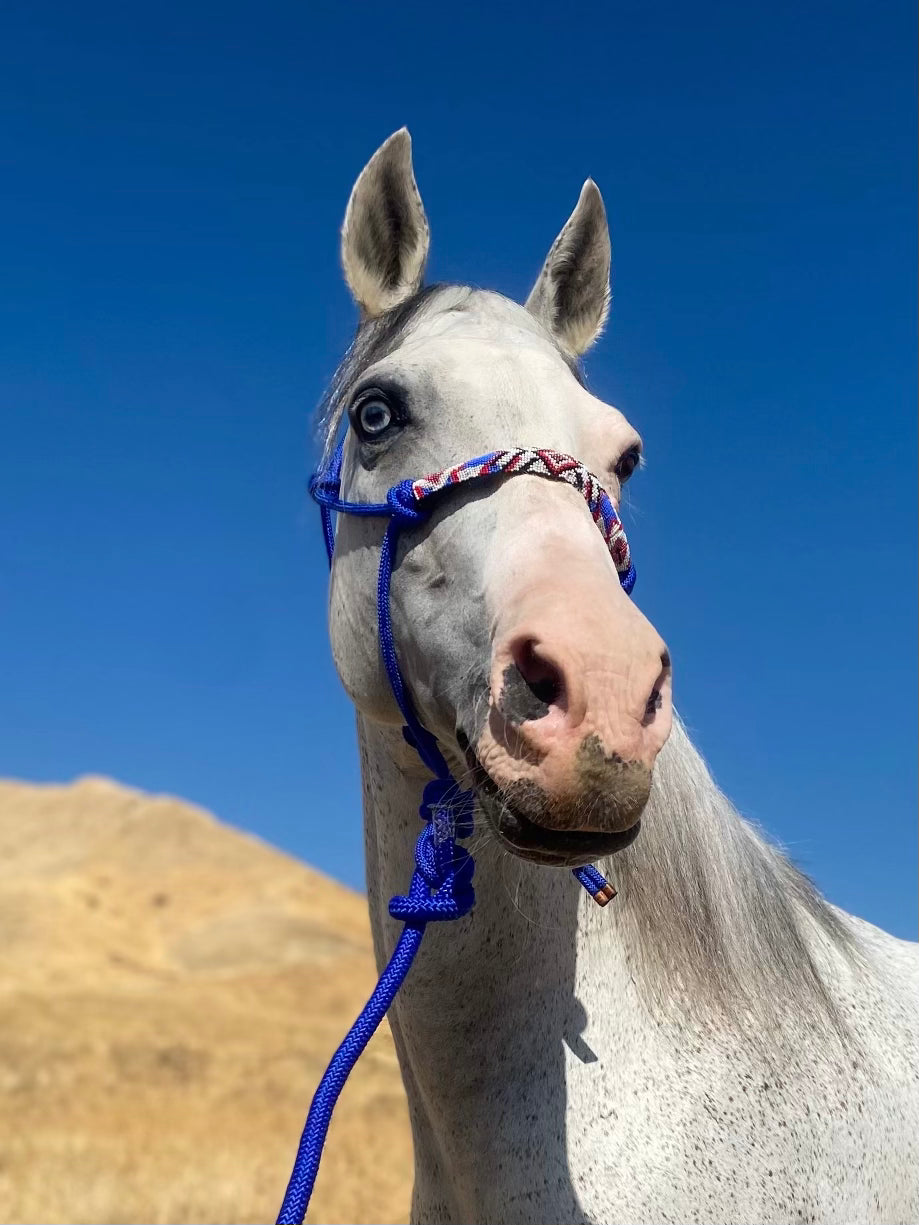 Bright Blue Beaded Rope Halter