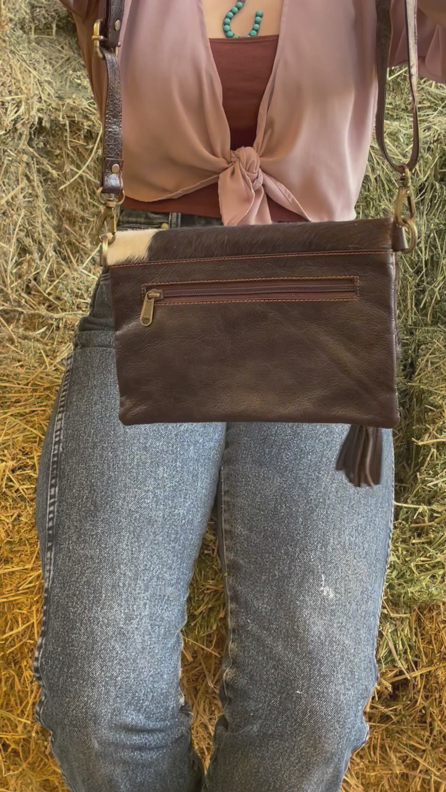 Experience a unique and elevated style with our Cowhide Crossbody purse. Please make sure to watch the video to see the exceptional features of this one-of-a-kind purse.